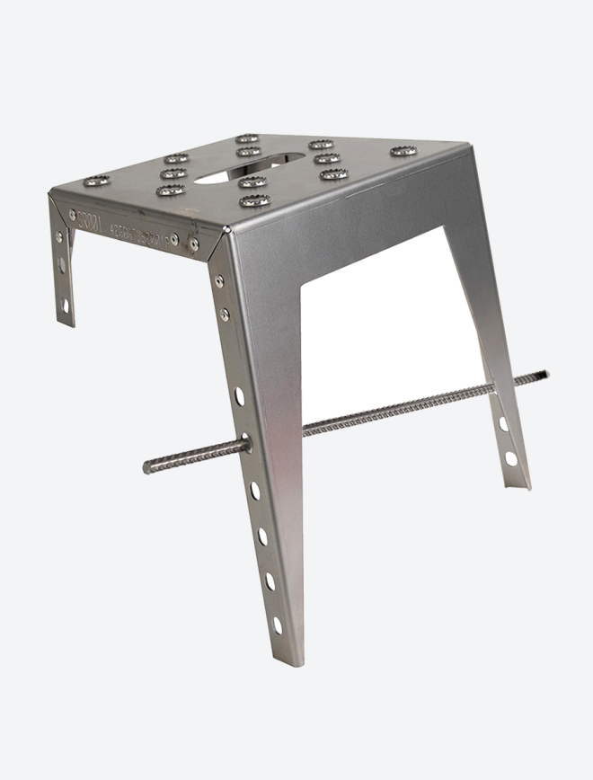 Die Stufen sind erhältlich in naturbelassenem Stahl (roh), der im verlauf der Zeit rostet oder als verzinkte Stahlvariante. Es stehen in jeder Ausführung drei verschiedene Trittflächengrößen zur Auswahl.